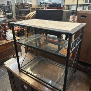 Mesa alta auxiliar de metal con piedra y vidrio